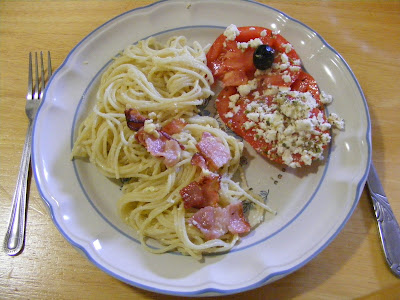 Crumble the feta cheese over the tomatoes. Drizzle with oil. Add the olives and sprinkle with oregano. Season with freshly ground pepper. It is not necessary to add any salt, since the feta cheese is already rather salty.